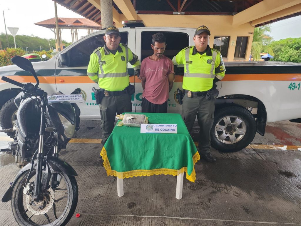 Transportaba en una motocicleta 1.200 gramos de clorhidrato de cocaína en la vía Barranquilla -Cartagena